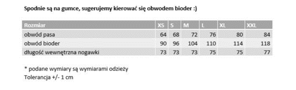 Spodnie posiadają dwie kieszenie z przodu i dwie z tyłu. W pasie jest gumka, dzięki czemu dopasują się do twojej sylwetki.
