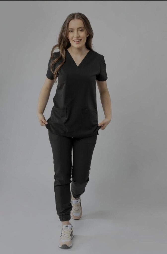 Tkanina jest trwała, przyjemna w dotyku i odporna na częste pranie, dzięki czemu zachowuje swój kolor i fason nawet przy codziennym użytkowaniu. Możliwość prania w temperaturze do 60°C to kluczowa zaleta w środowisku medycznym — zapewnia wysoki poziom higieny i bezpieczeństwa bez kompromisów w kwestii komfortu.